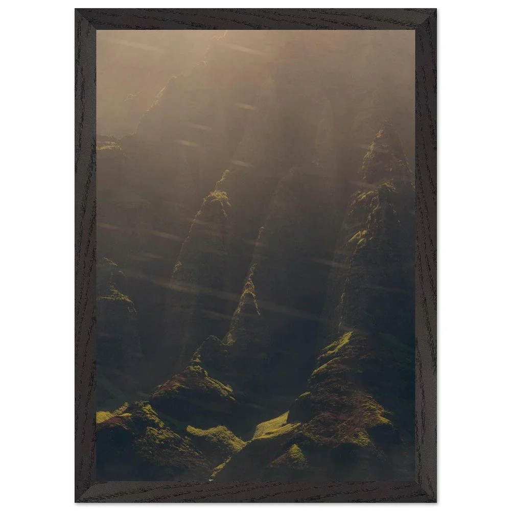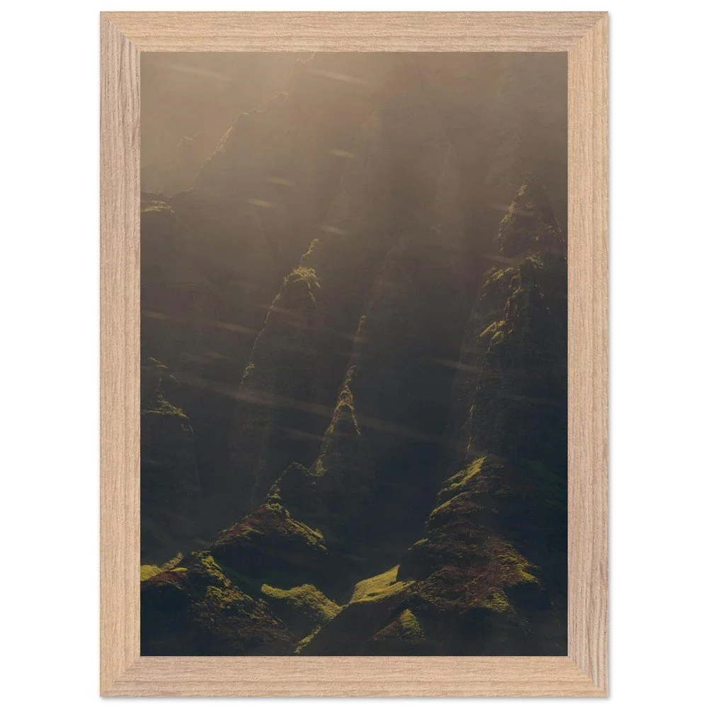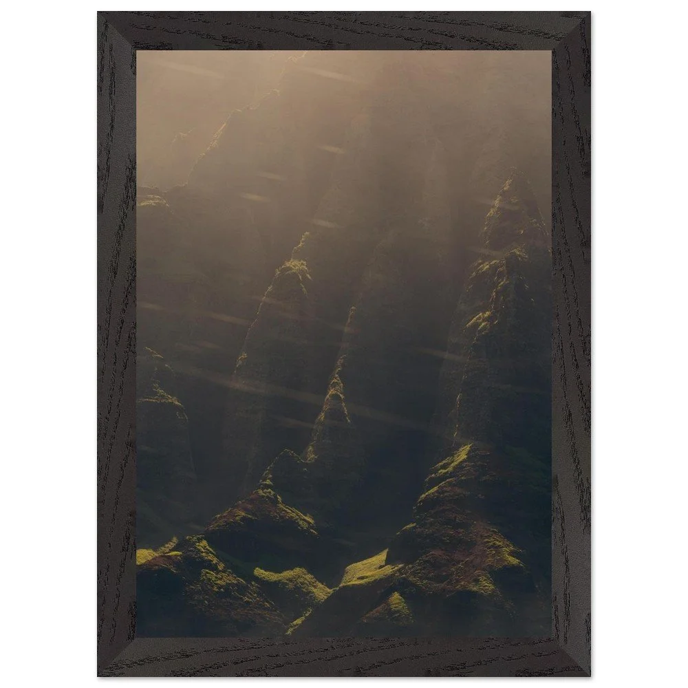 For a refined, gallery-ready presentation, this option features a premium solid wood frame crafted from responsibly sourced oak or ash. Each frame showcases unique wood grain, making every piece one-of-a-kind.